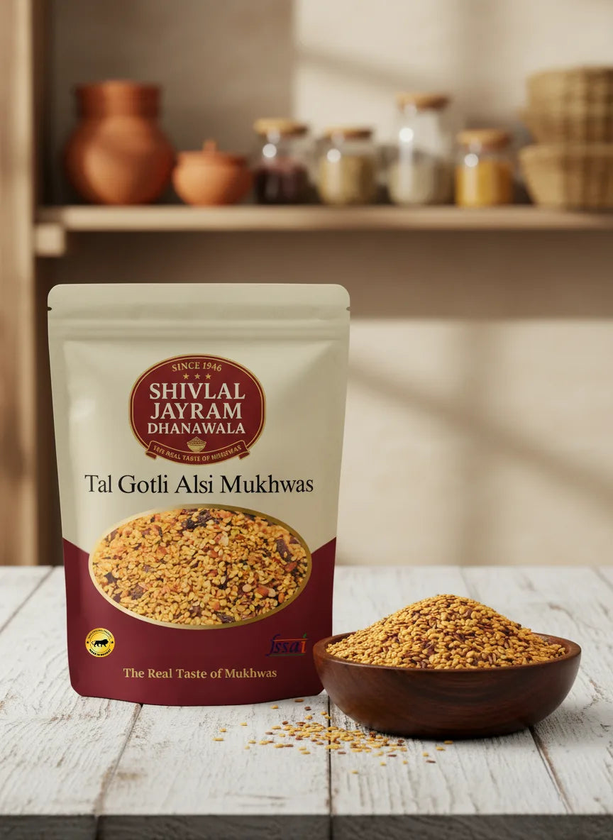 Indulge in this wholesome and flavorful mix — buy Tal Gotli Adsi Mukhwas online from Shivlal Jayram Dhanawala and enjoy the authentic taste of tradition.